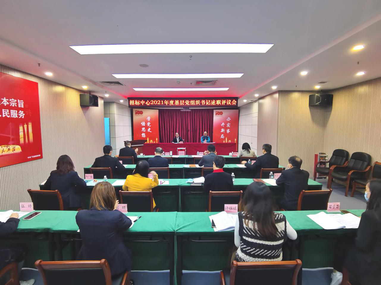 会上,各基层党组织书记围绕履行党建工作职责,发挥党组织领导作用,落实公司2021年度党建工作重点任务,从开展党史学习教育、学习贯彻习近平新时代中国特色社会主义思想情况,坚持党的全面领导、推动重点改革发展任务落实情况,加强基层组织建设、促进党建工作与生产经营深度融合情况,强化人才机制创新、打造高素质干部人才队伍情况,全面从严管党治党、营造风清气正的政治生态情况五个方面进行述职。听取述职报告后,参会人员进行了现场评分。