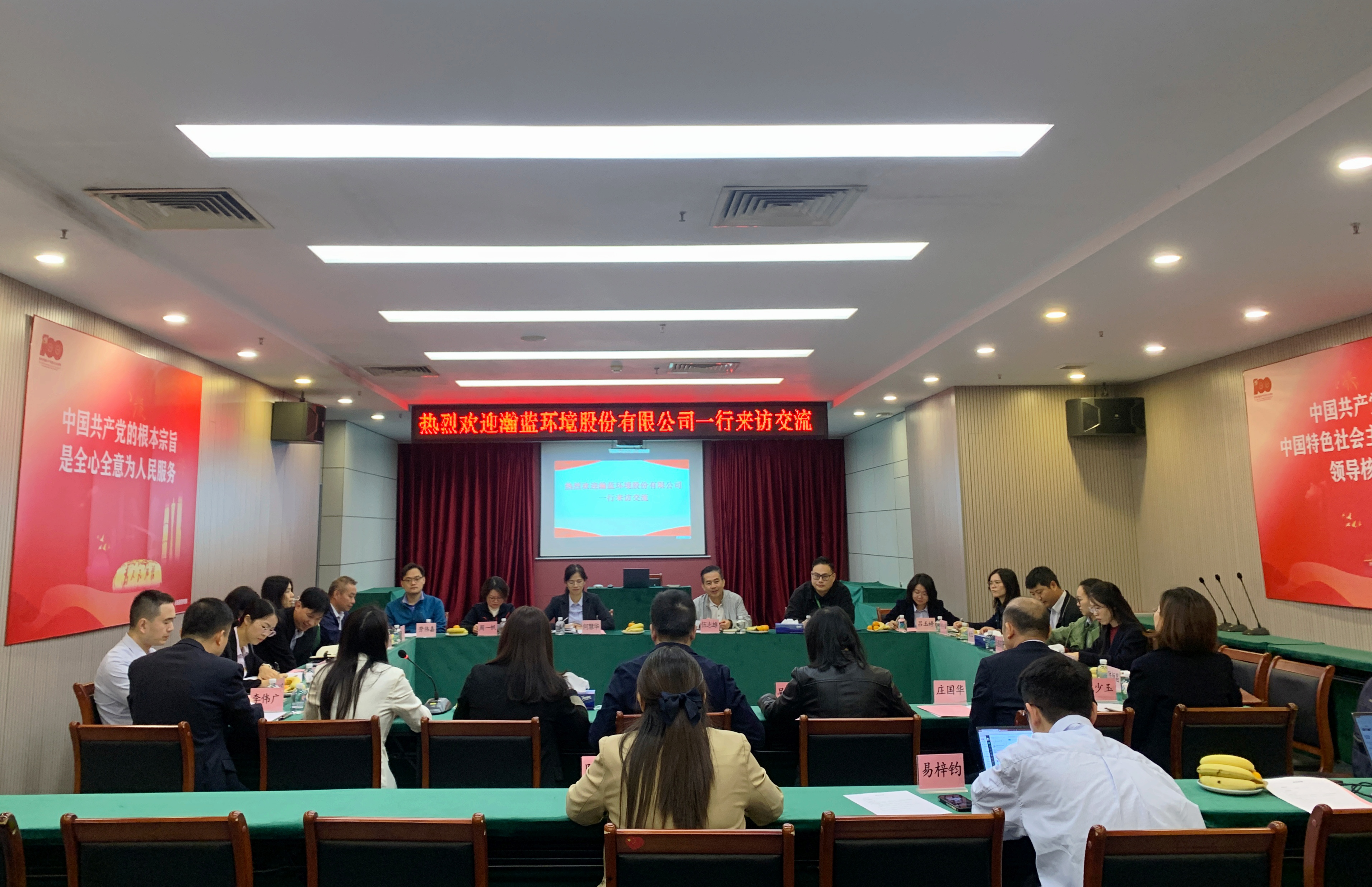 会后,瀚蓝环境一行参观了招标中心办公场所、电子开评标区以及党建、廉洁文化宣传阵地。